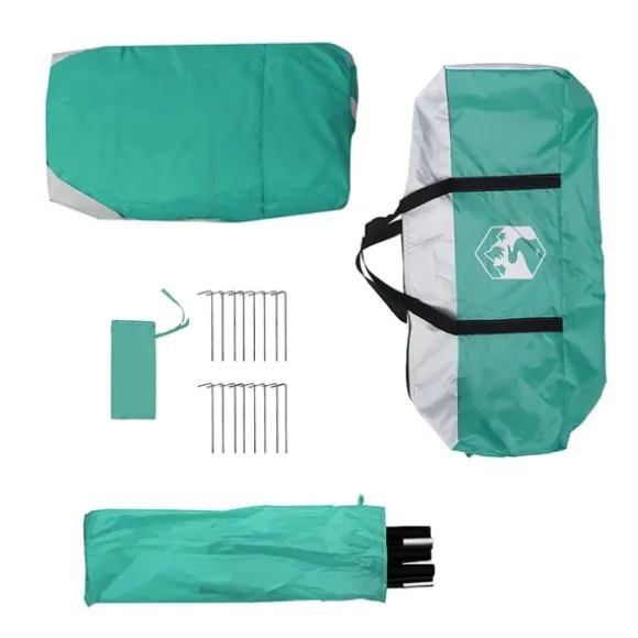 - Enkel installation och nedtagning: Att sätta upp och ta ner tältet är enkelt tack vare de mycket flexibla och lätta glasfiberstängerna och det bekväma stift- och ringanslutningssystemet.