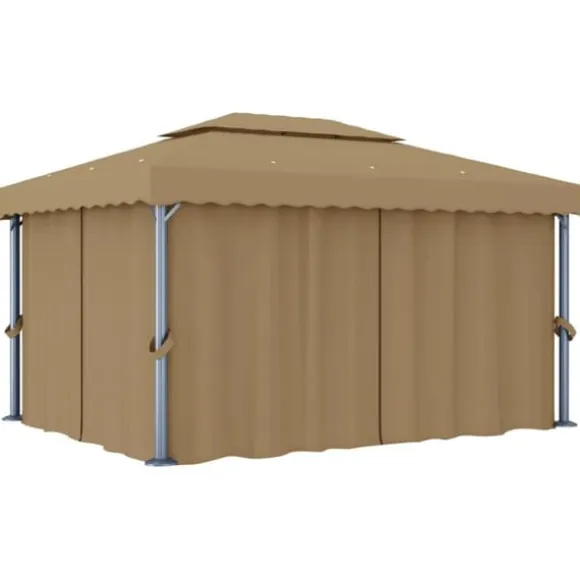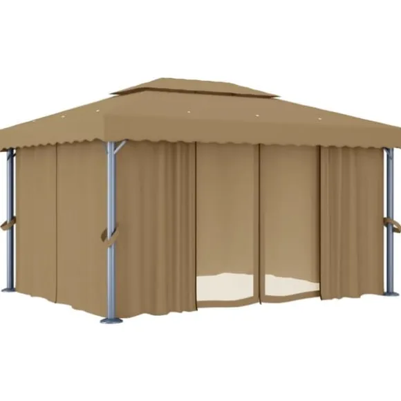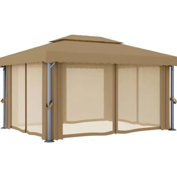 Den är utformad för att ge dig en sval plats för trädgårdsfester, familjepicknickar, grillfester och andra sammankomster. Den är tillverkad med aluminiumstolpar och stödstänger i pulverlackerat stål som säkerställer överlägsen stadighet och hållbarhet. Taket och sidoväggarna är tillverkade i högkvalitativt polyestertyg med PA-beläggning som skyddar dig mot skadliga solstrålar och lätt regn. Ett väldesignat tak i 2 våningar säkerställer bra luftflöde undertill. Dessutom ingår draperier och nätskärmar som ger dig insynsskydd samtidigt som det skyddar mot störiga myggor och andra insekter. Fästen med kardborreband ingår för enkel fastsättning.