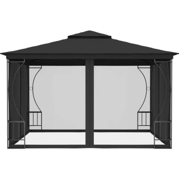 Detta praktiska partytält ät starkt och hållbart, tack vare sin stålram. Det skyddande taket tillsammans med avtagbara draperier är båda tillverkade i exceptionellt polyestertyg som har PA-belagts, vilket gör det UV-beständigt och därmed lämpligt för utomhusbruk! Näten är ett bra tillägg till paviljongen, eftersom de är klarsynta, lätta, ventilerade, har bra ljusgenomsläpplighet på dagen och håller myggor ute på natten, vilket gör att du kan njuta av en lugn stund utomhus. Dessutom är detta vackra utomhusskydd snabbt och enkelt att montera.