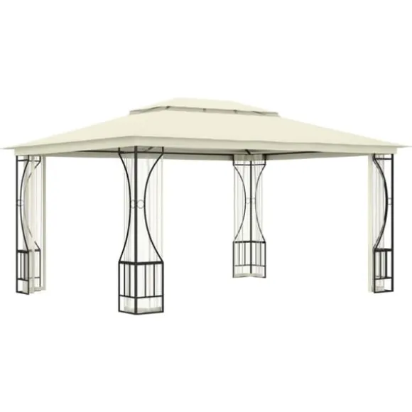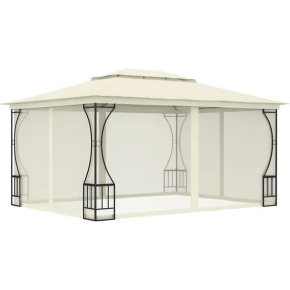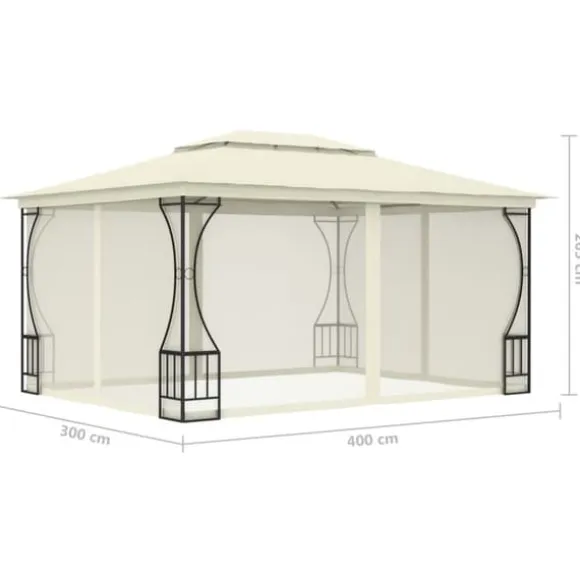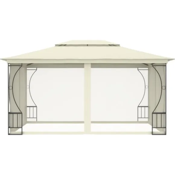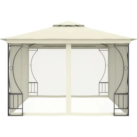 Detta praktiska partytält ät starkt och hållbart, tack vare sin stålram. Det skyddande taket tillsammans med avtagbara draperier är båda tillverkade i exceptionellt polyestertyg som har PA-belagts, vilket gör det UV-beständigt och därmed lämpligt för utomhusbruk! Näten är ett bra tillägg till paviljongen, eftersom de är klarsynta, lätta, ventilerade, har bra ljusgenomsläpplighet på dagen och håller myggor ute på natten, vilket gör att du kan njuta av en lugn stund utomhus. Dessutom är detta vackra utomhusskydd snabbt och enkelt att montera.