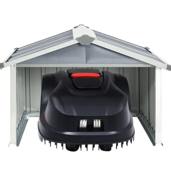 Tack vare konstruktionen av galvaniserat stål är skjulet robust och stabilt. Laddstationen kan placeras inuti garaget så att roboten går in varje gång den måste laddas. Robotgräsklipparen går in automatiskt och skyddas innan den går ut igen för att klippa gräset.