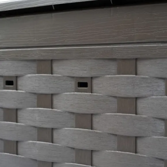 Kompostlådorna är tillverkade i plast som gör dem UV- och väderbeständiga. Enheten har en lätt stomme och ett prydligt utseende. Den har ett delat lock för optimal bevattning och ventilation. Tack vare ventilationshålen på sidodelen kan avfallslådan uppnå optimal kompostering på ett ypperligt sätt. Den fyrkantiga komposten kommer väl till hands vid återvinning och smälter samtidigt fint in i trädgården.