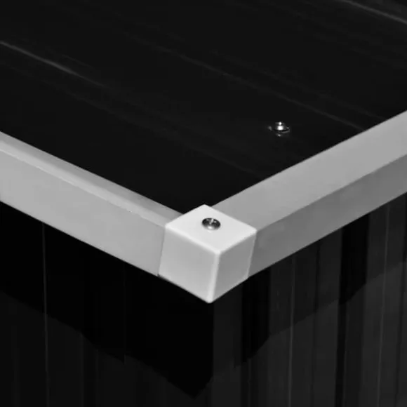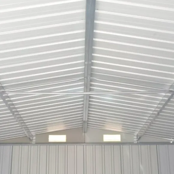 Förvaringsskjulet har ventiler som säkerställer utmärkt ventilering. Dess dubbla skjutdörrar framtill gör det enkelt att gå in och ut. Tack vare den galvaniserade stålkonstruktionen är verktygsskjulet hållbar och starkt och rostar eller påverkas inte av dåliga väderförhållanden.