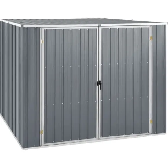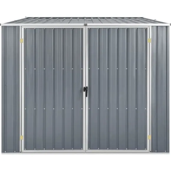 Detta trädgårdsskjul är tillverkat i galvaniserat stål, kräver mycket lite underhåll och är mycket hållbart. Dubbeldörren framtill gör det enkelt att ta sig in och ut. Dessutom rinner regnvatten av taket tack vare dess sluttande design.