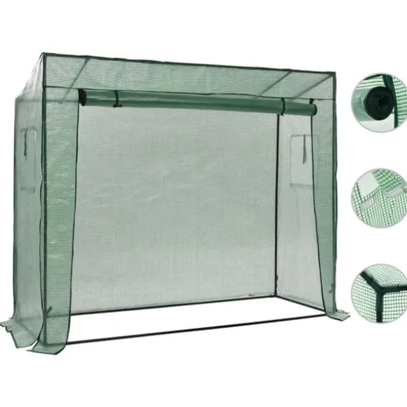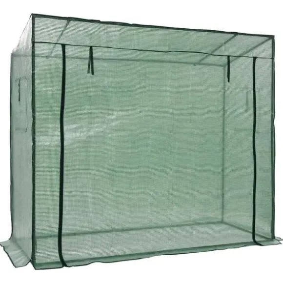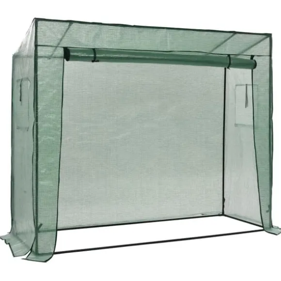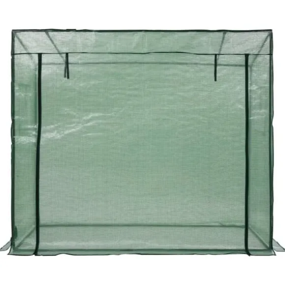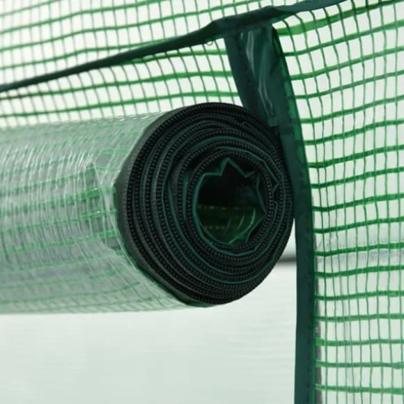 Detta kvalitativa västhus är tillverkat med en pulverlackerad stålram för bra stabilitet och hållbarhet. Det slitstarka överdraget i ett stycke är UV-skyddat och har en framdörr med dragkedja för ökad ventilation och enkel tillkomst. Det genomskinliga gröna överdraget låter solljus nå dina växter och blommor, vilket ger maximal sol till växter och gör temperaturen varmare. Det har en upprullbar dörr med blixtlås och ett sidofönster vilket säkerställer enkel åtkomst och ventilation för optimal luftcirkulation.