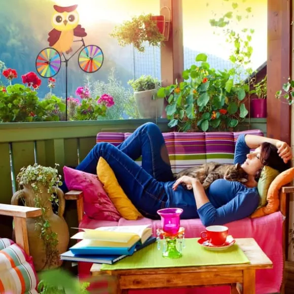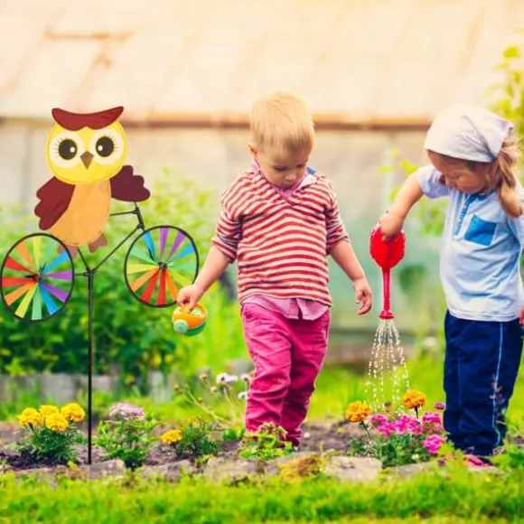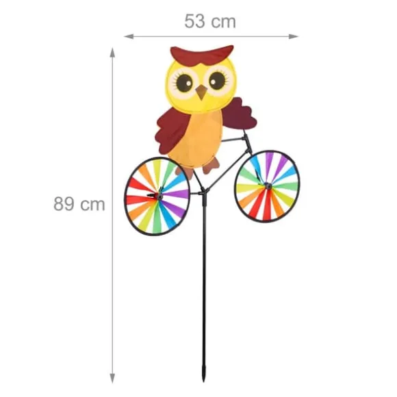 Lys upp din utomhusmiljö med denna färgglada vindsnurra med charmiga cyklande djurmotiv, perfekt för trädgårdar, balkonger, uteplatser eller till och med stranden, denna dekorativa snurra är enkel att montera och ger en lekfull touch var den än placeras, sätt den enkelt i en rabatt eller kruka och njut av att se den snurra i vinden, cyklande djurmotiv, för rabatter eller krukor, snabb och enkel att montera, utmärkt dekoration för trädgård, balkong eller uteplats, kan förvaras undan när den inte används, nyckelpiga H x B x D: ca 85 x 53 x 5,5 cm, uggla H x B x D: ca 89 x 53 x 5,5 cm, sköldpadda H x B x D: ca 82 x 52 x 5,5 cm, stånglängd: ca 45,5 cm, hjul ∅: ca 20 cm, väger endast ca 100 g, tillverkad av polyester och plast