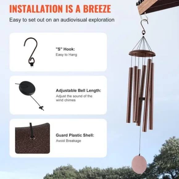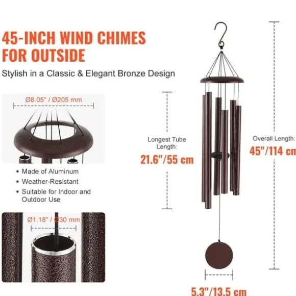 - Exceptionella kvalitetsegenskaper: Tillverkade av aluminium och anodiserade med bronsfärg tål våra vindspel utomhuselement för överlägsen hållbarhet och långtidsanvändning.