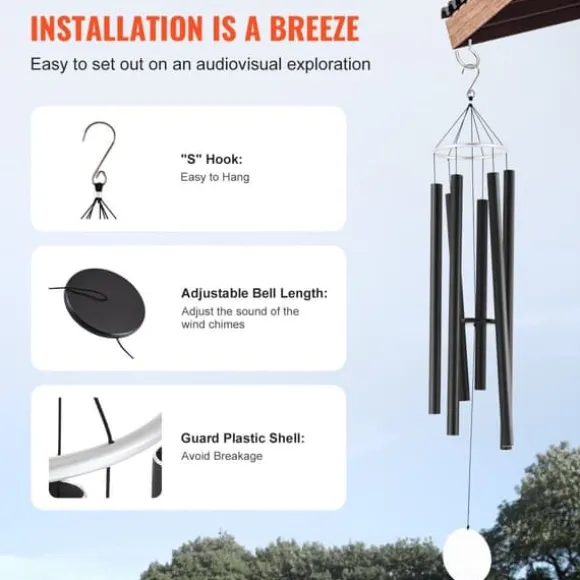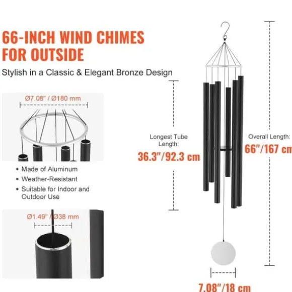 Tillverkad för att tåla utomhuselement: Tillverkad av aluminium och anodiserad med bronsfärg, vindspel för utomhusbruk tål utomhuselement. Den starka nylonsnöret, förtjockade rörväggar och ”S”-kroken ger överlägsen hållbarhet och långtidsanvändning.