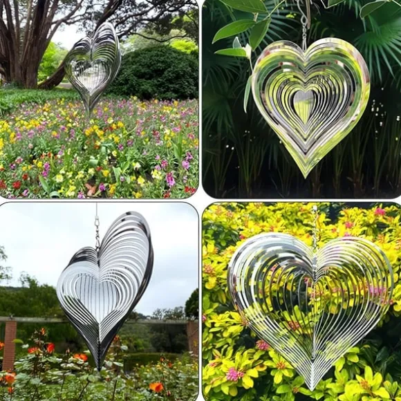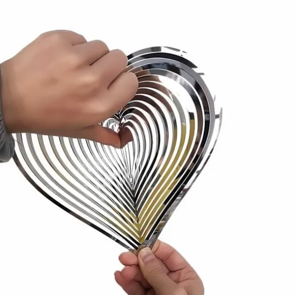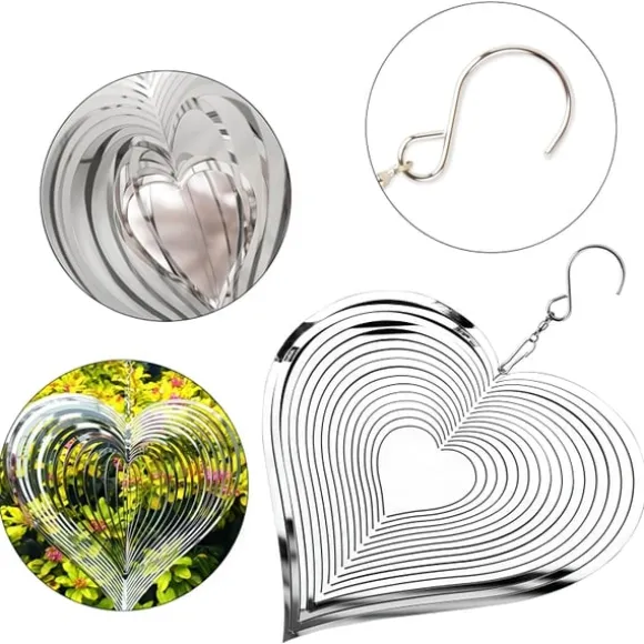 Det här vackert utformade vindspelshjärtat är inte bara en dekoration, det är ett blickfång. Tack vare sin 360° roterande S-krok fångar den vinden och skapar en hypnotisk 3D-effekt som både fascinerar och förskönar. Den spegelblanka silverytan reflekterar omgivningen och passar lika bra i trädgården som på balkongen, altanen eller i fönstret. En charmig detalj som väcker uppmärksamhet oavsett väder eller säsong.