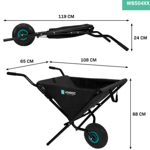 Stor trädgårdskomfort med VONROC hopfällbara skottkärra!