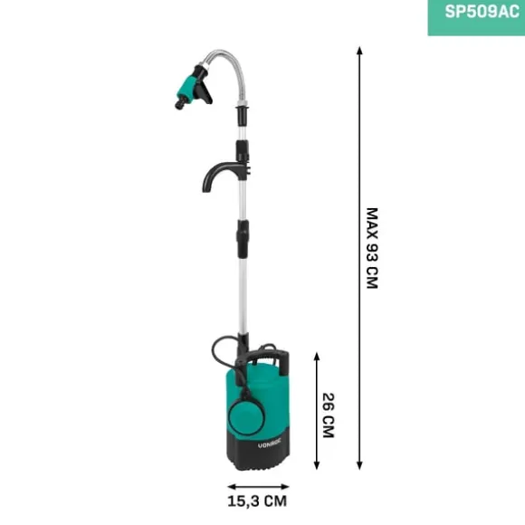 Denna regnvattenpump är utrustad med den bekvämlighet du kan förvänta dig av VONROC. Använd den höjdjusterbara hängaren för att fästa pumpen på önskad höjd. Den integrerade kranen gör att du kan reglera vattenflödet manuellt. Rengöring av filtret är enkelt tack vare det lätt avtagbara locket. Den mycket långa 10 meter långa kabeln get stor rörelsefrihet och den universella slangkopplingen är kompatibel med praktiskt taget alla trädgårdsslangar inklusive vår egna trädgårdsslang HH501XX.