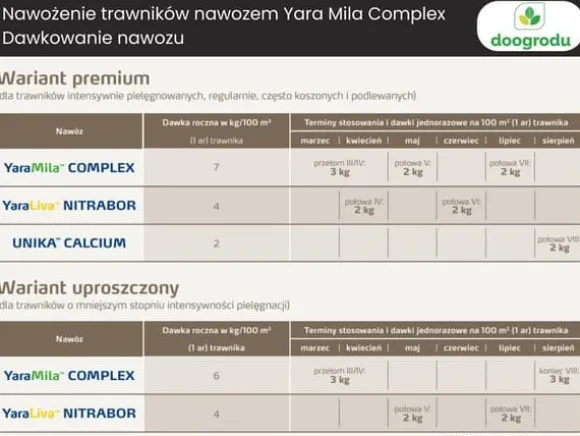 - Befintliga gräsmattor: 20–30 g/m² (2–3 kg/100 m²) tidigt på våren (mars-april) och 15–25 g/m² (1,5–2,5 kg/100 m²) under den intensiva tillväxtperioden (maj-juni).